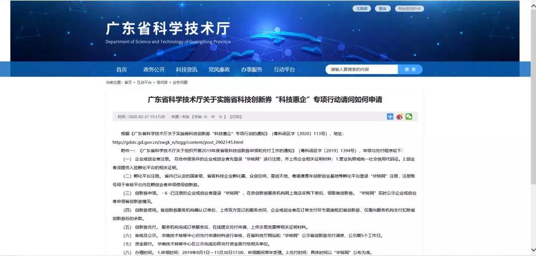 2月21日,廣東省科學技術廳發布了《廣東省科學技術廳關于實施省科技創新券“科技惠企”專項行動請問如何申請》,為科技型中小企業申領創新券指明道路。