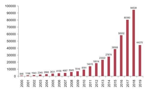 (受公開滯后影響,2019年專利數(shù)據(jù)公開不完整)